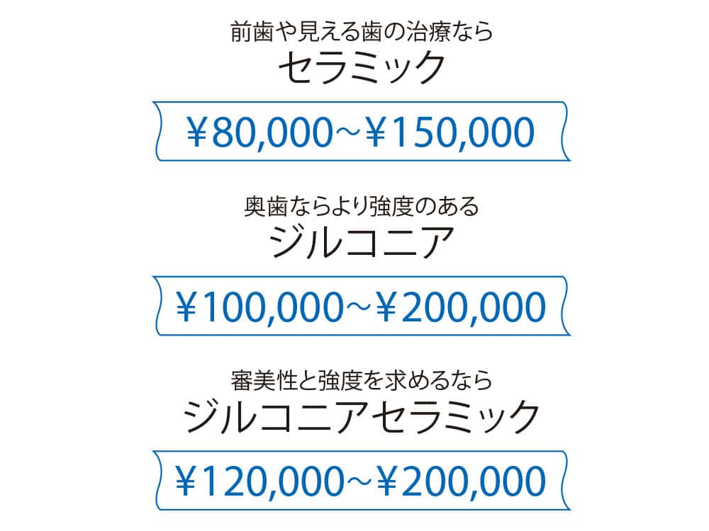 自費診療で被せ物を選ぶとき、歯の場所によって、強度や審美性を考慮しながら適切な材質を選ぶのがベスト。昨今の銀の価格高騰により、保険診療の銀歯の代替措置で安価なプラスチックも登場してきていますが、耐久性や衛生面に難があり、上記3素材が将来的にベター。
