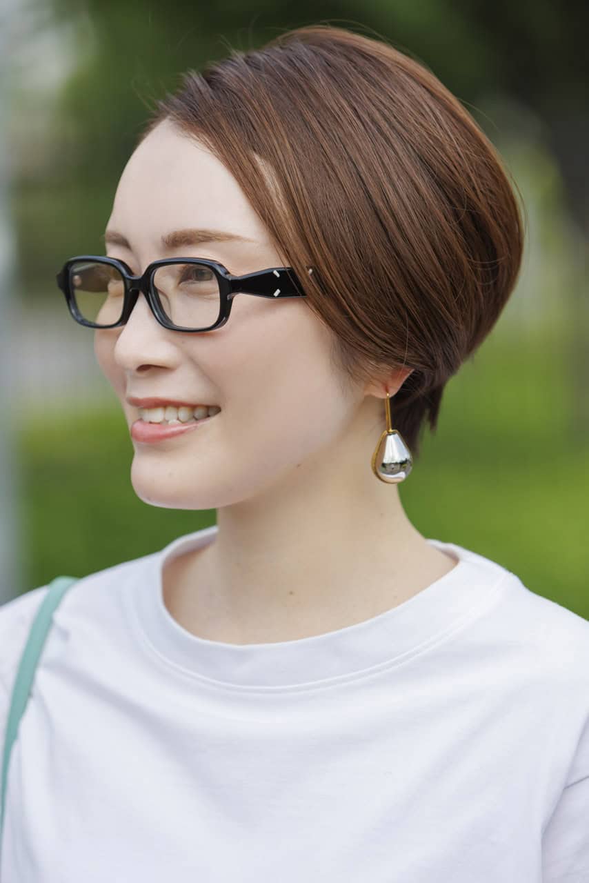 フレームの形や太さ、レンズの色でガラリと雰囲気が変わるところがアイウェアの魅力。昔から視力は良いですが、実はメガネに憧れるがあまり、中学生の頃は伊達メガネをかけていたという過去も(笑)。何にでも合う黒縁フレームの伊達メガネですが、今年は薄いカラーが入ったレンズのものを新調しました。