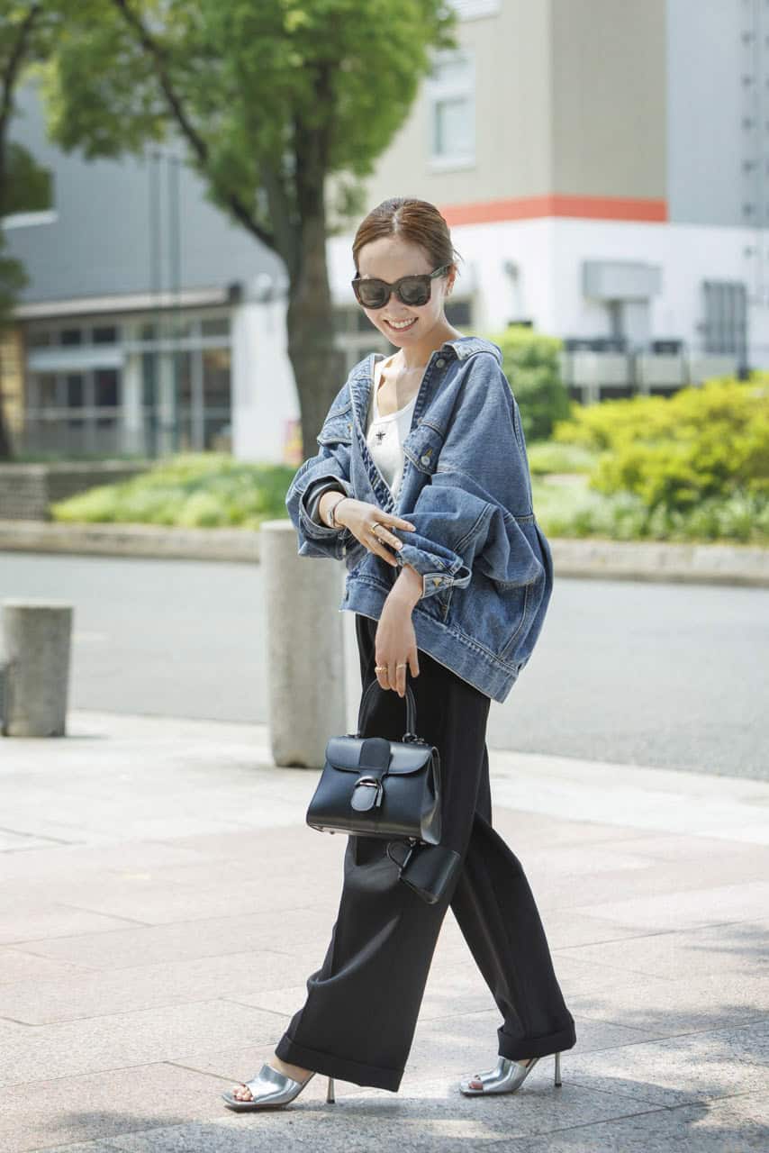 甘さ調整だったり抜け感だったり、コーディネート全体のバランスを取るのに欠かせないアイウェアは15個所有。トレンドも大事ですが、自分の顔の形や雰囲気に合うものを選びたいので、できるだけ試着して買うようにしています。デニムジャケットがオーバーサイズなのでアイウェアで目線を上に持ってくるようにしました。