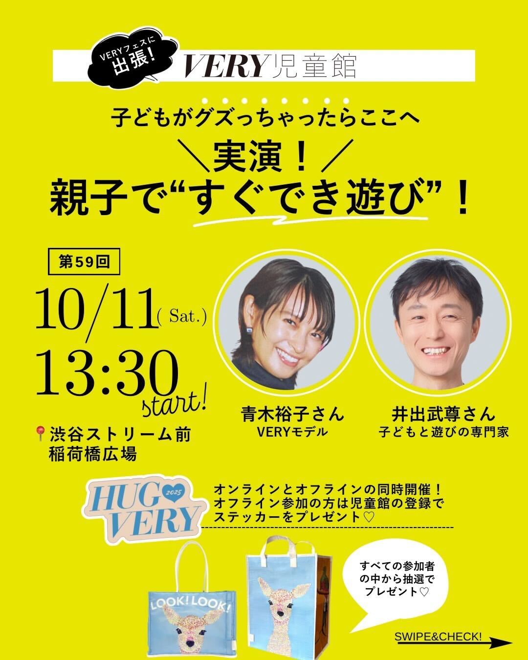 ■出演者:青木裕子さん(VERYモデル)井出武尊さん(子どもと遊びの専門家)菅原圭絵(VERY編集部)司会・北山えいみ(VERY児童館ディレクター)