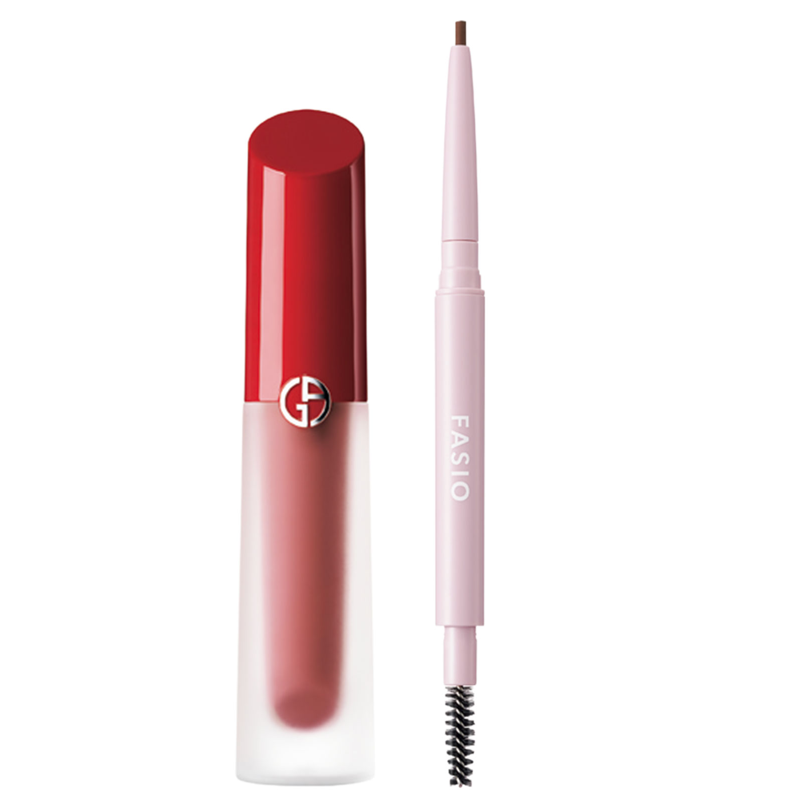 左から:リップ マエストロ サテン #1 ¥6,380(アルマーニ ビューティ)ファシオ ウォータープルーフ アイブロウ(細芯)02 ¥1,100〈編集部調べ〉(コーセー)