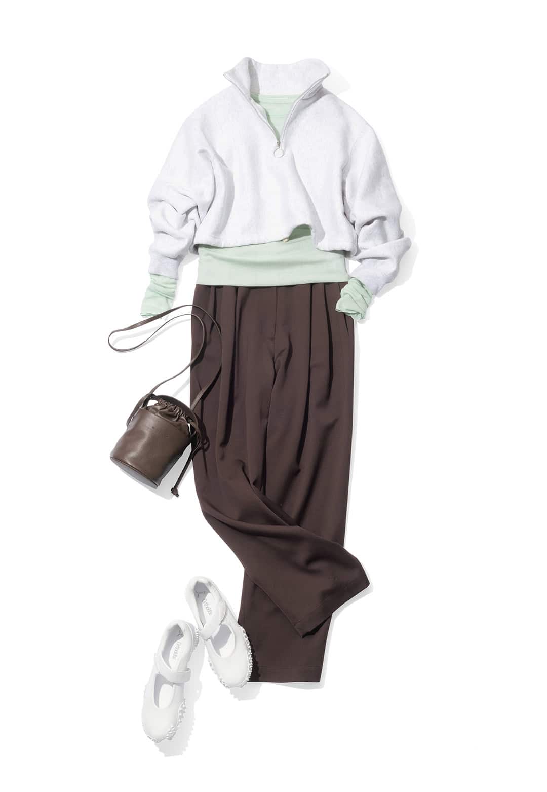 抜け感スニーカーでカジュアルの鮮度がUP!クロップド丈のスウェットで バランス良く。