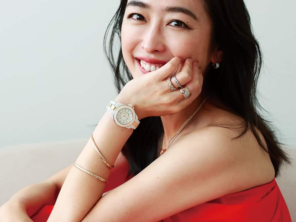 家族や親しい友人との時間は、装いで互いの信頼や絆が揺らぐことはありません。だからこそ、華やかな存在感を放つウォッチを、自由に楽しめる特別な場でもあります。バケーションでは子どもたちと全力で過ごすため日焼けは避けられず、シミも増えているのが現実ですが、その分、ボリュームのあるジュエリーがしっくりくるようになったと感じています。異なる色合いのゴールドやプラチナを組み合わせたコーディネートにも惹かれており、今後はそうした素材の重なりを、より意識的に楽しんでいきたいと思っています。