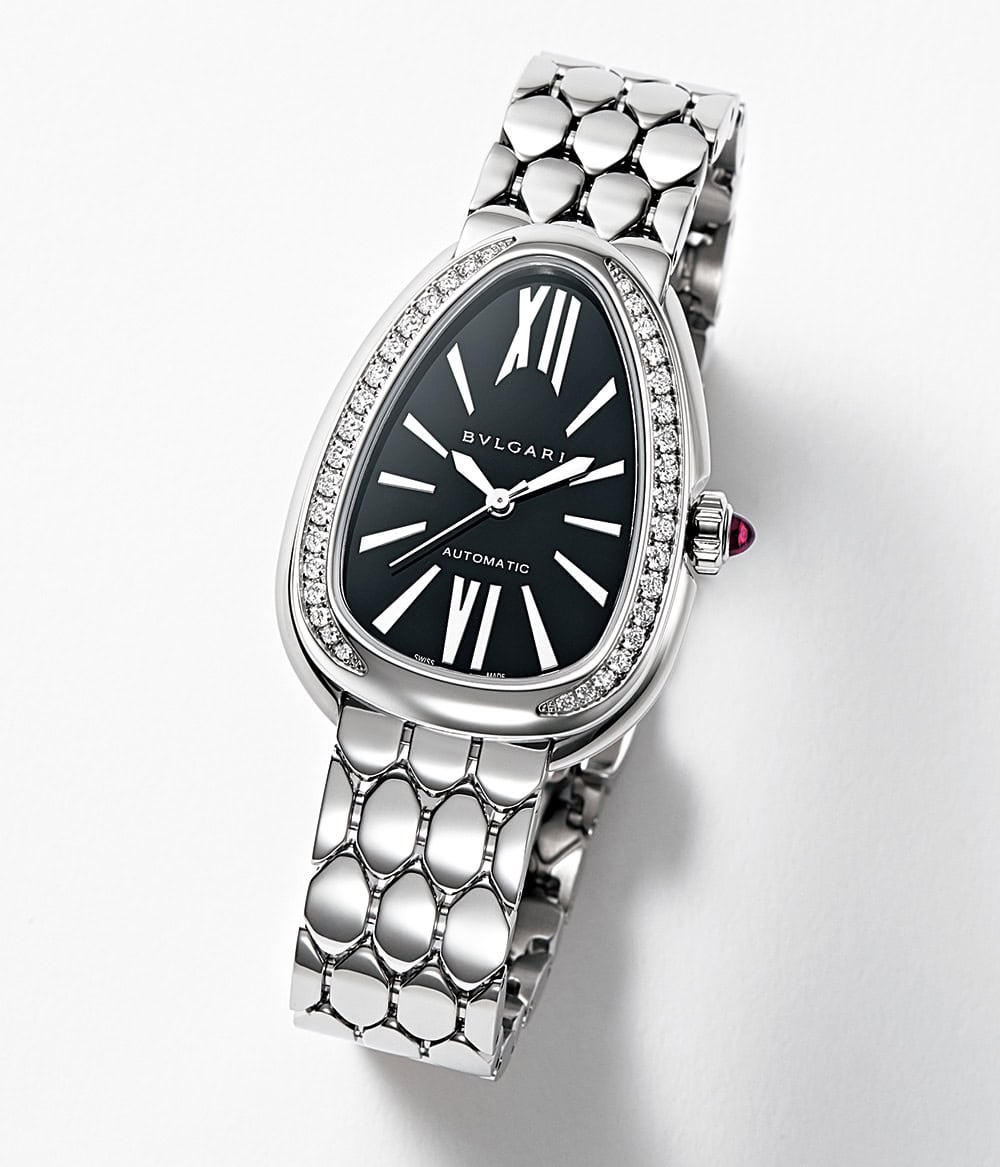 「本格機械式時計を」という女性の声から生まれた新作の自動巻きムーブメントを搭載したセルペンティ。機械式ならではの秒針の動きがその意義をアピールしてくれます。時計「セルペンティ セドゥットーリ」〈SS×DIA、34㎜、自動巻き、SSブレスレット〉¥1,573,000ブレスレット〈18KWG〉¥1,144,000左手薬指リング〈18KPG〉¥379,500ピアス〈18KPG〉¥491,700ネックレス〈18KPG×DIA〉¥852,500(すべてブルガリ/ブルガリ・ジャパン)キャミソール¥35,200(サヴィル サヴィ)/span>