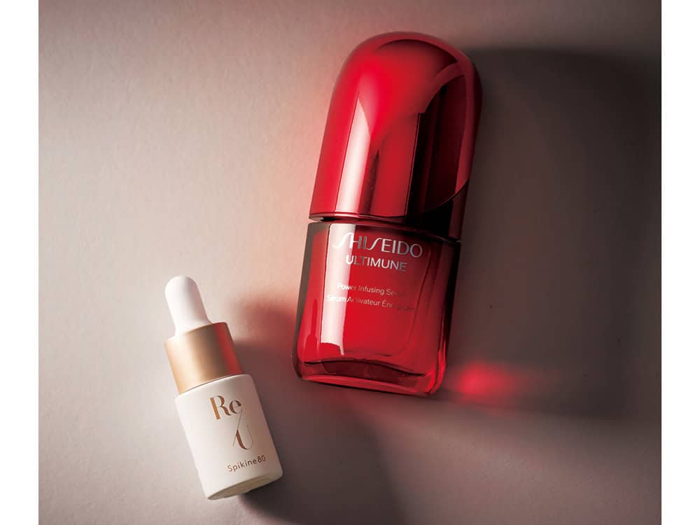 (左)ヒト幹細胞×マイクロニードル配合。Re/U スピカイン 80 5㎖¥9,800/BYINA (右)発酵カメリアエキス配合。SHISEIDO アルティミューンTM パワライジング セラム 30㎖ ¥9,900/SHISEIDO