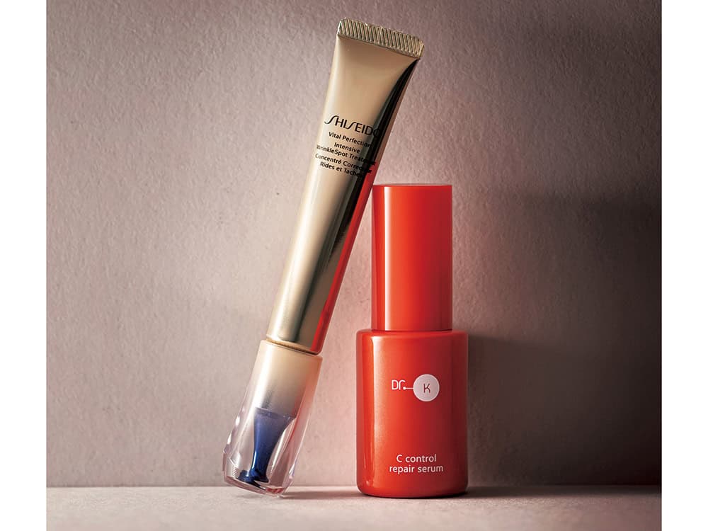 (左)SHISEIDO バイタルパーフェクション リンクルリフト ディープレチノホワイト 5 【医薬部外品】 20ℊ ¥14,740/SHISEIDO(右)ドクターケイ C コントロールリペアセラム 30㎖ ¥9,350/ドクターケイ