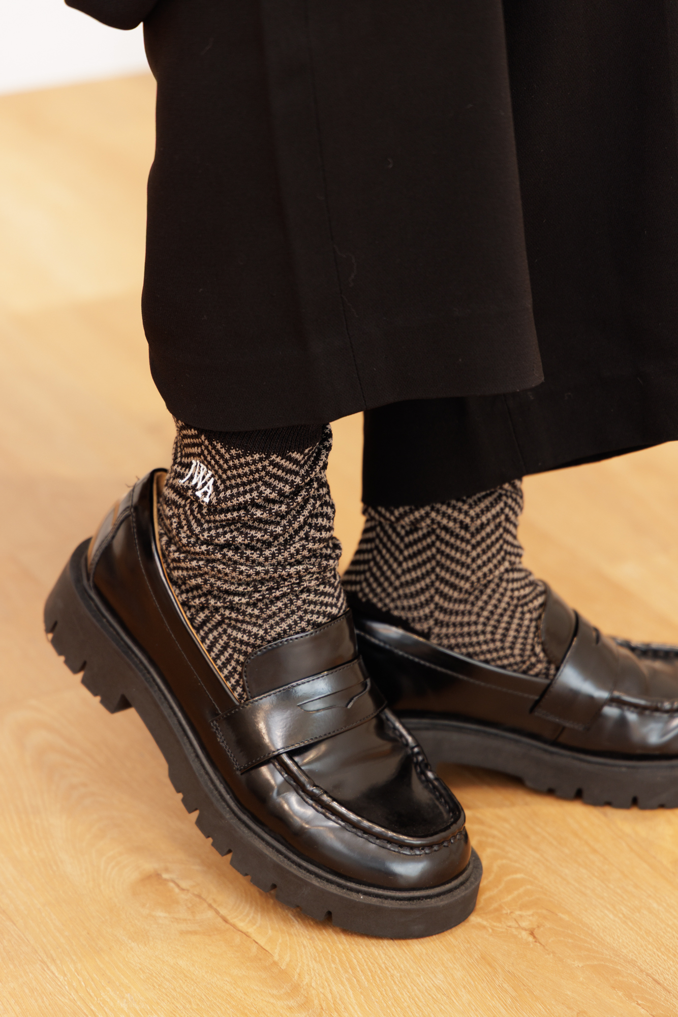 “おじ風”なヘリンボーン柄が洒落る! 靴下とのリンクも◎