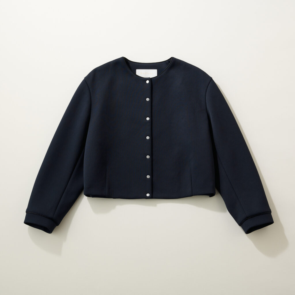 上品さを醸しながら、驚くほど軽いダンボール素材を採用。ジャージーならではの柔らかな生地で、1日中快適に過ごせます。ドットボタンでカジュアルさを添えつつ、全体的に丸みのあるシルエットでエレガントな表情をキープ。トレンドの短丈で、ワンピースやフレアスカートとのバランスもバッチリです。カーディガン感覚でさっと羽織れて、アウターの下に仕込みやすいのも魅力。