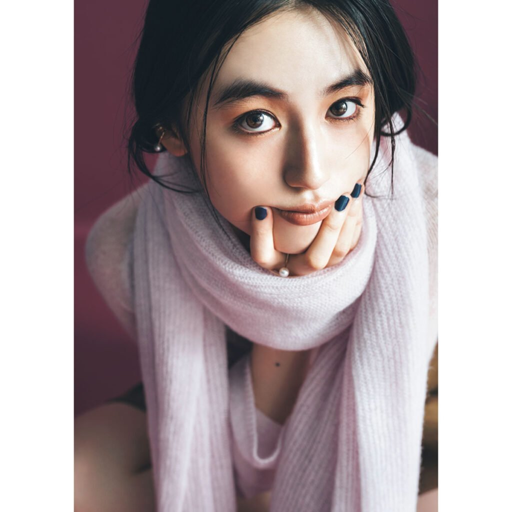 撮影/田形千紘 モデル/八木莉可子 ヘアメイク/菊地美香子(TRON) スタイリング/川瀬英里奈 編集/佐藤彩花 再構成/Bravoworks,Inc.